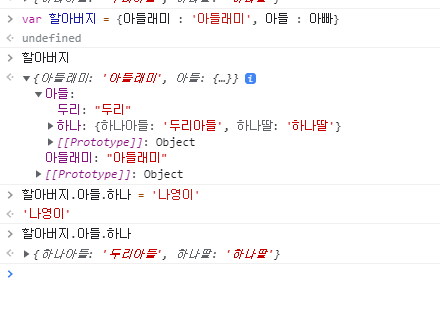 아빠.하나 를 새로운 객체나 새로운 값으로 수정은 불가능했다.