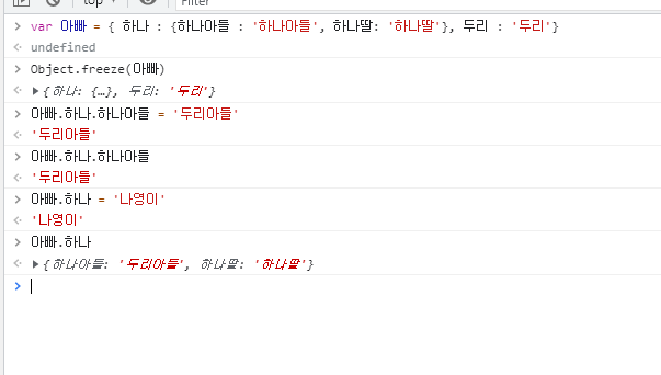 객체 속성안의 수정은 얕은 동결이기에 가능하다곤 했고,