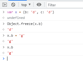 4. 당연하겠지만, Object.freeze된 객체를 다른 객체가 참조하여 수정하는것 또한 불가능하다.