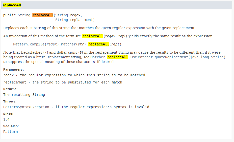자바 공식 문서에서 replaceAll의 사용